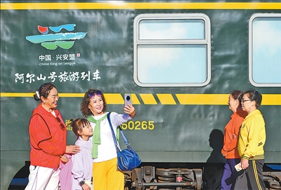 The “Aershan” tourist train, jointly launched by the Xing’an League Culture and Tourism Investment Group in Inner Mongolia and the CR-Shenyang Culture and Tourism Group, recently made its inaugural run. The five-car “Aershan” tourist train includes carriages with ethnic customs experiences and grassland scenery experiences, creating a mobile space that integrates tourism, performances, educational trips, shopping and leisure, meeting the diverse needs of travelers.