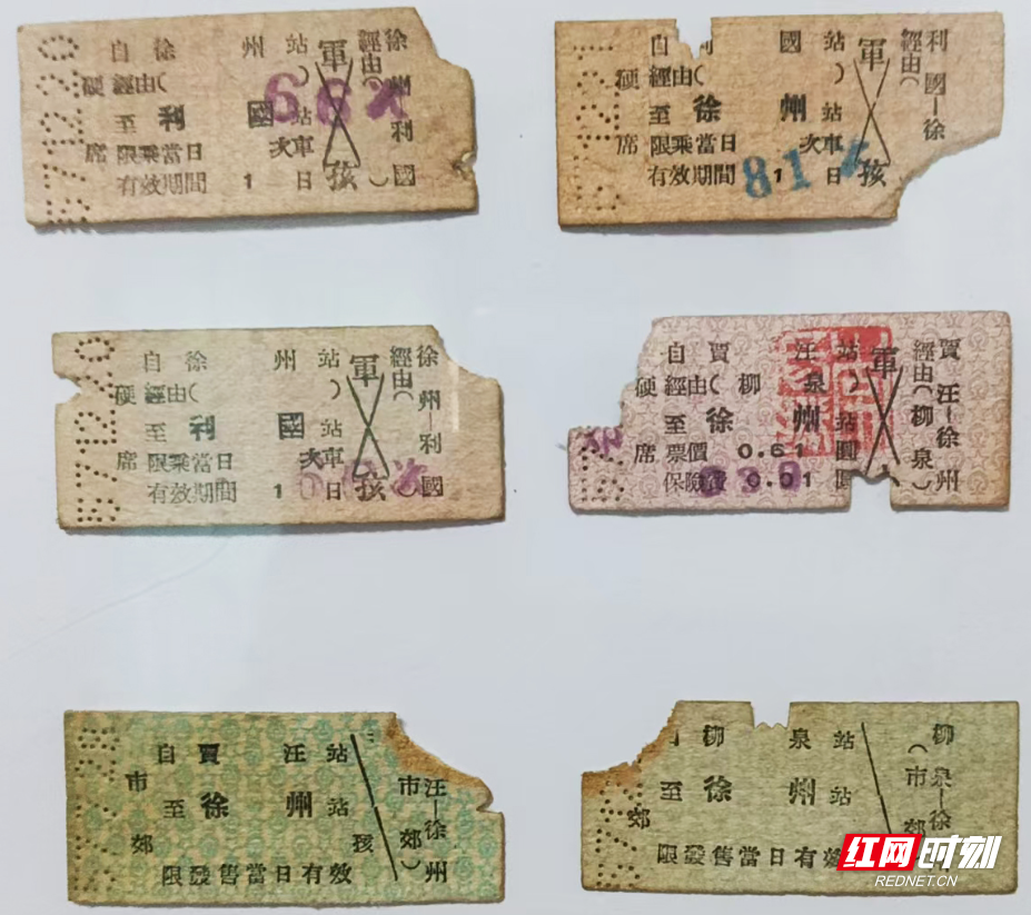 这里还有全国独一无二的通往韶山的列车“特价客票”,也有1957年仅使用过半年多的简体字与繁体字混合在一起的特殊火车票。除此之外,一组6张第一代火车票更是引起了众多参观者尤其是年轻人的注意:仅有大拇指那么大的小小硬纸板卡片的一端,有着密密麻麻的细小针孔,那些排列有序的针孔显现出两个一组的阿拉伯数字。懂行的人说,这几个数字代表着乘客“限当日发售乘车有效”所持车票的具体日期。而陈列馆里展示的那几张火车票,第一组数字都是“57”,而且票面上全部是如今大多数人认不全的繁体字,表明它们大都是1957年12月从徐州至贾旺,柳泉至利国等不同的火车站售出的老火车票。