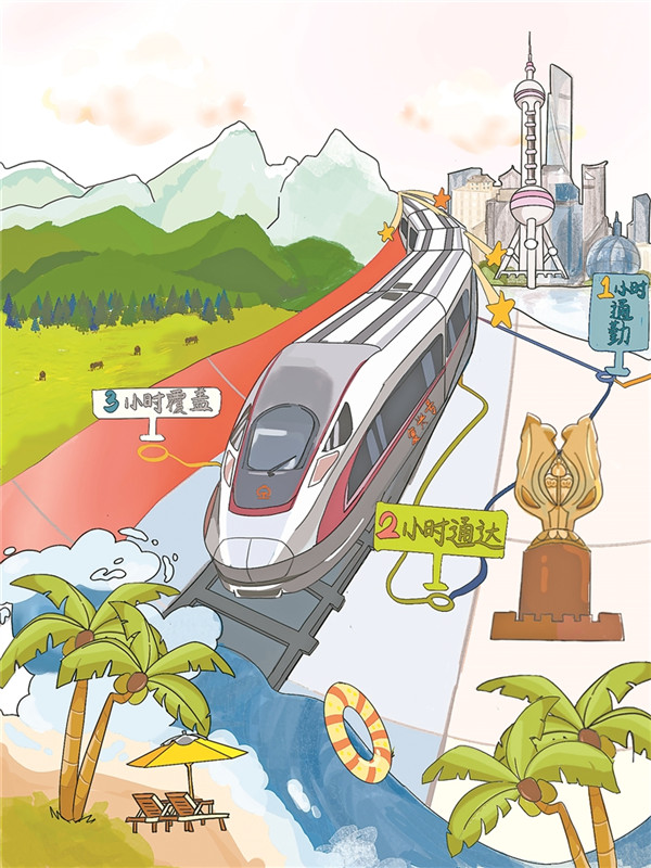 高铁网络“123出行圈”。蓝婧瑜 绘