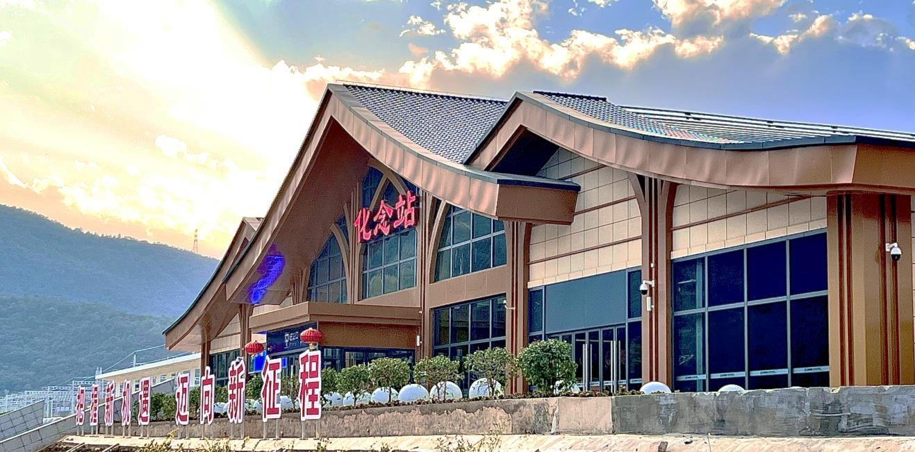 2.化念站位于玉溪市峨山县化念镇东北侧,距镇中心约3.0公里。化念站为线侧下式站房,总建筑面积1500平方米,地上1层,最高聚集人数300人。旅客乘降站台2座、到发线3条。设有重点旅客候车区。采用验检合一、进出站合一的进出站检票模式。