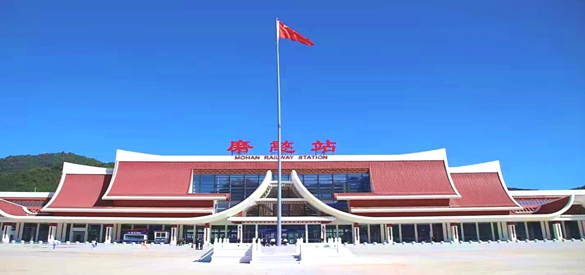 4.墨江站位于云南省墨江哈尼族自治县联珠镇癸能村,距离县城区约8公里。墨江站为侧平式站房,主体建筑面积4990平方米,地上1层(两侧夹层),地下局部1层,最高聚集人数600人。旅客乘降站台2座、到发线3条。采用验检合一的进站检票模式,设商务候车室、母婴候车室及重点旅客候车区。