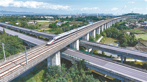连日来,中国铁路成都局集团有限公司精准实施“一日一图”,做好运力梯次动态投放,全力满足旅客多样化出行需求。图为近日,一列复兴号动车组列车安全行驶在西成高铁上。金志辉 摄