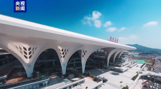 央视新闻微博:#重庆东站今日投入运营#【#穿越机视角去新建的重庆东站#】