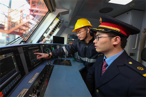 2025年2月4日0时30分,安康东站场寒风凛冽。机车乘务员兰天赐以标准手势划破夜色:"左侧无车,右侧无车,通过!"在确认线路安全后,他顺利抵达停靠在16道的和谐型电力机车旁。仔细检查机车状态和沙箱储量后,兰天赐登上驾驶室,开始向车载系统输入运行数据和限速值。正当他准备倒热水时,车载联控系统传来站场值班员的声音:"26002次司机,16道出站信号开放,16道发车。"兰天赐立即放下水杯,通过车载通讯系统复诵指令,确认各项设备状态正常后,于0时55分准时驾驶载有2800多吨复合化肥等春耕物资的大列发车。