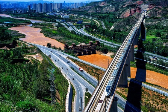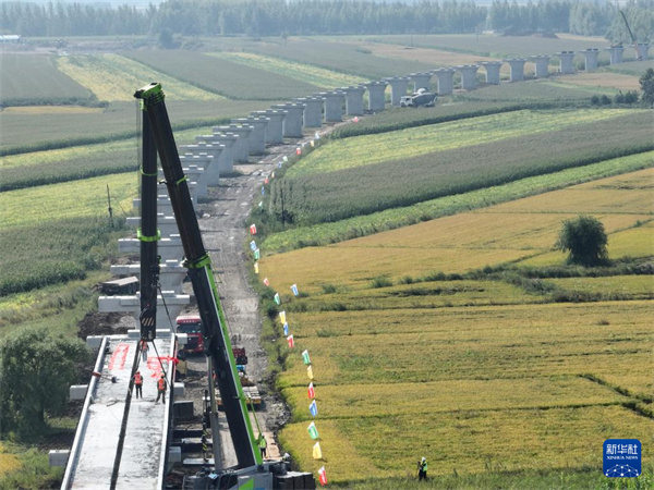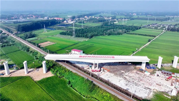 新华每日电讯:潍坊至宿迁高铁沭河特大桥上跨胶新铁路T构梁完成转体