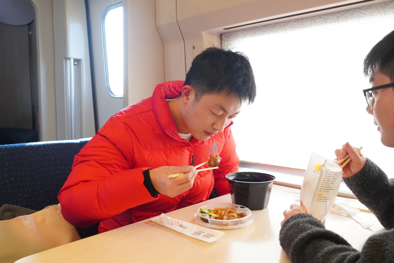 新年新气象,自1月5日起,中国铁路上海局集团有限公司在途经上海、杭州、南京、合肥、徐州等地的470多趟高铁列车上,一共上新了17款价格从18元到30元不等的普惠化、大众化平价优质套餐。通过12306手机App下单、扫座位扶手二维码、服务员下车厢等形式销售,旅客不用离开座位即可享用。