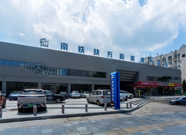 南铁快充九江火车站新能源产业园——项目是南昌局集团公司首个综合性新能源产业园,在路地双方共同努力下,将长期未得到开发的两块闲置土地,打造集“光、换、充、洗”为一体,并延伸新能源汽车展销、餐饮等相关配套服务的多功能产业园。园区于2024年1月18日正式上线运营,总用地面积约20837㎡,配建316个机动车停车位、15台新能源汽车快充桩,并同步配建新能源汽车综合服务中心4895㎡。目前已成功引入国内新能源品牌企业“比亚迪”入驻,高效吸引商业配套社会投资,拉动了产业园经营效益,实现了铁路经营创效新动能。